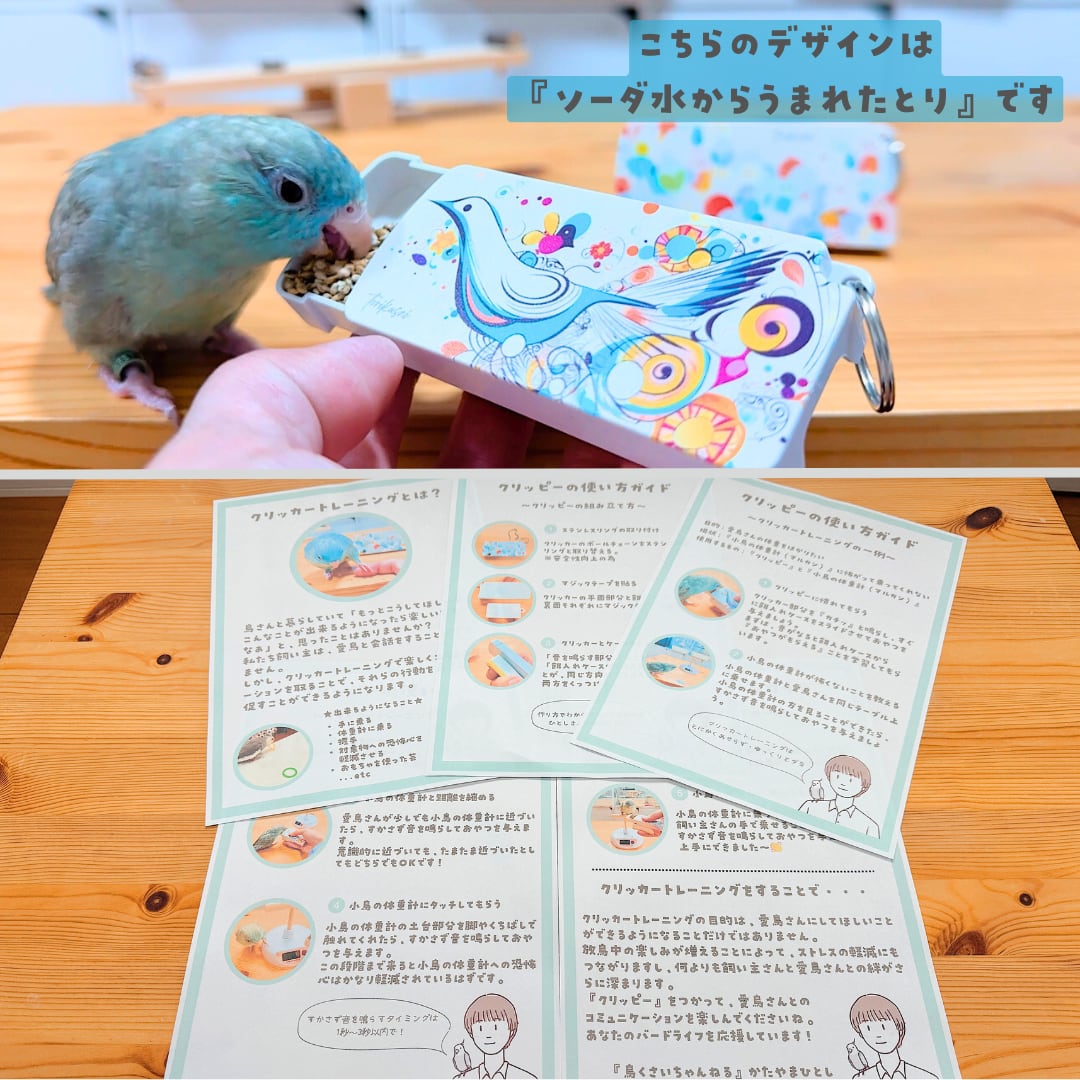 また、『クリッカートレーニング』の基本を学べるガイドも付属しているので、『クリッピー』が届いたその日から鳥さんとのトレーニングを始めることができます!